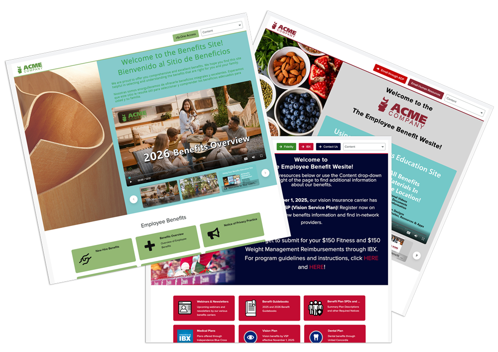 Additional employee-facing benefits communications website with all the features listed above are available in many packages.